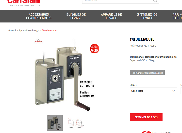 Avec ci-après le palan mural à manivelle trouvé sur le Net chez un fournisseur et livré par la poste.